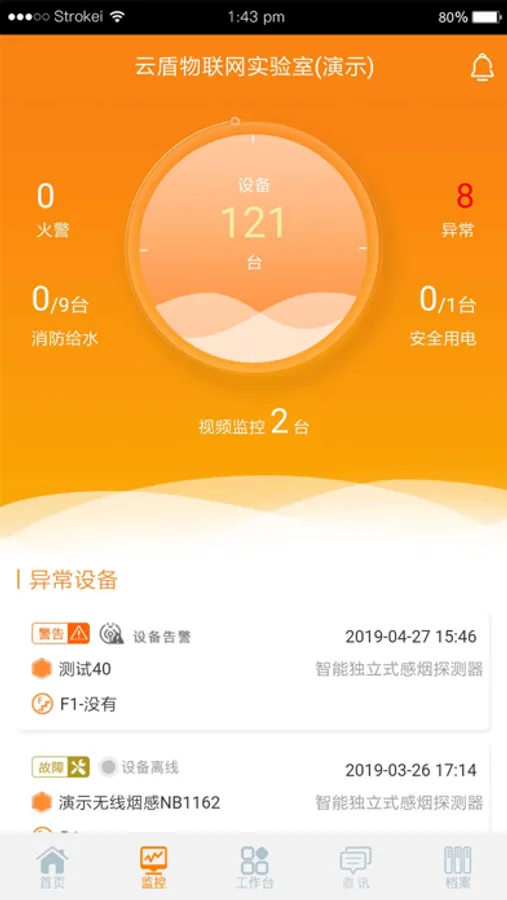 城市云盾-消防安全管家主要服务于城市云盾联网社会单位用户。用于其即时接收、查看单位的消防设施运行信息,如:火灾报警、设备故障报警和其他报警信息。