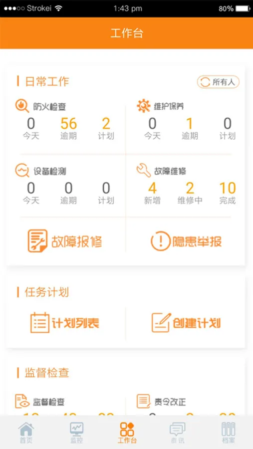同时单位相关管理者还可以通过消防安全管家APP实现对单位内的消防设施日常维护保养工作的计划、进度、工作结果的实时查看和管理。