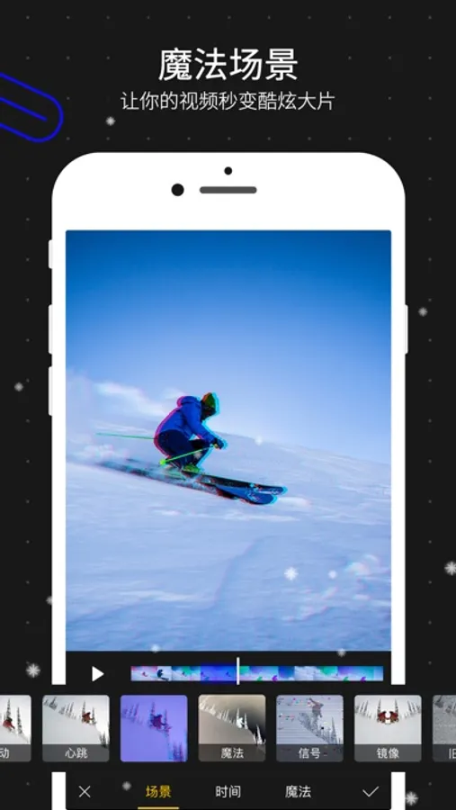 一指长按,抖动、幻觉、魔法、旧电视、镜像等多种特效任你使用,让你的视频更别样。