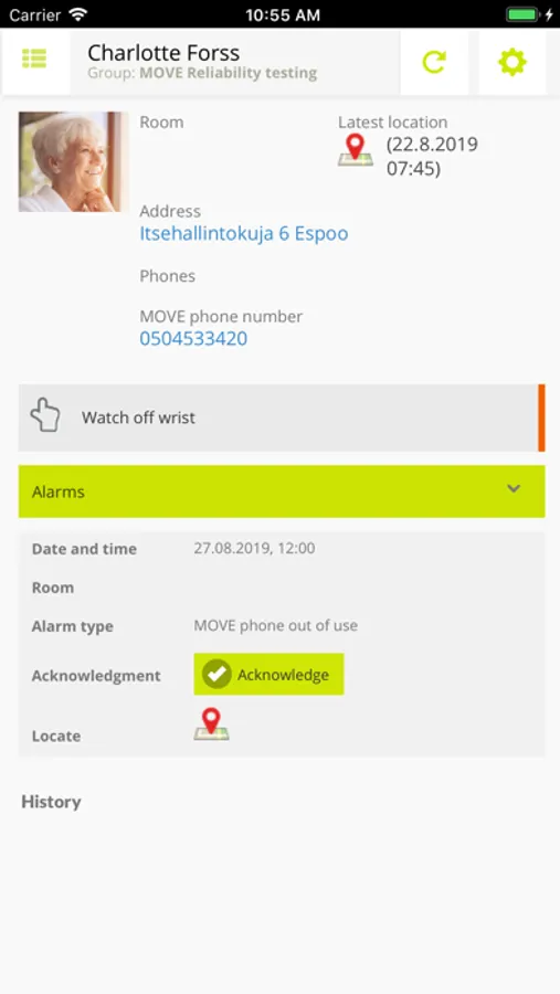 Basic objective of this mobile application is to handle alarm(s) raised by the user or for the user. An alarm indicates to the user (=nurse) that a customer requires help. The alarms are always created "real-time".