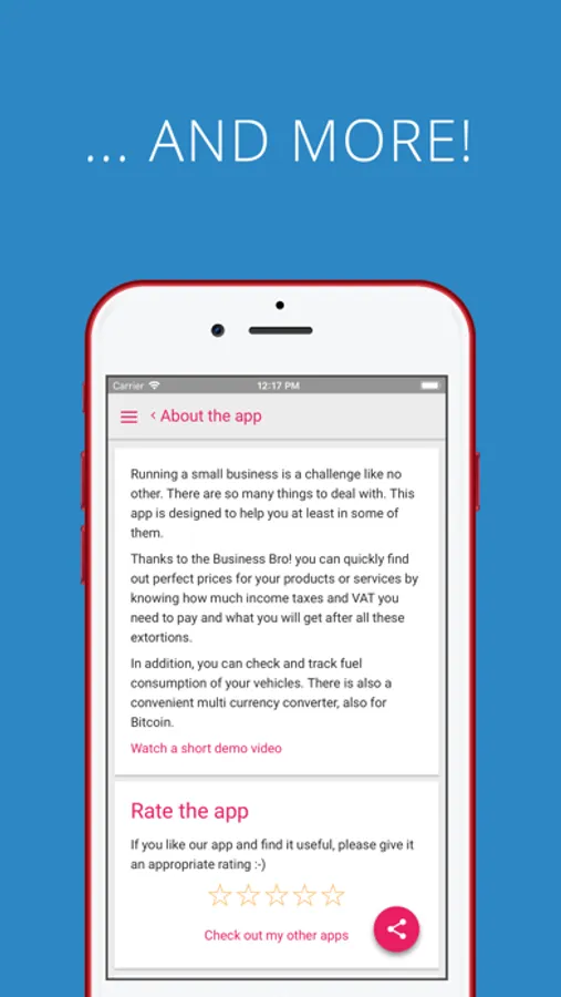 Running a small business is a challenge like no other. There are so many things to deal with. This app is designed to help you at least in some of them. Convert taxes, calculate exchange rates and track car usage costs. Why wait? Install now for free! Some of the coolest features: