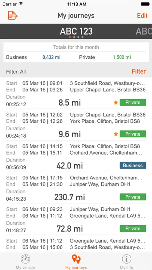 View your journey information including time, location, mileage and duration to help keep track of vehicles and plan your routes effectively. Get business mileage reports to help with your expenses.
