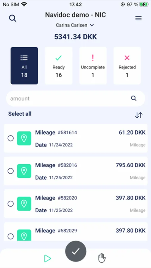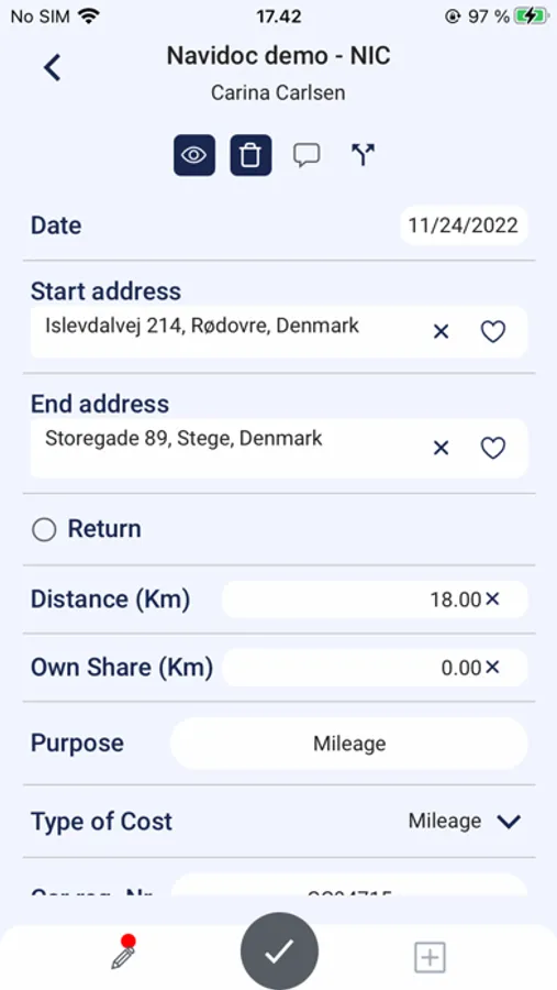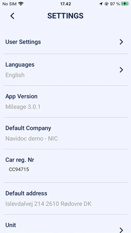 Navidoc Mileage Screenshots