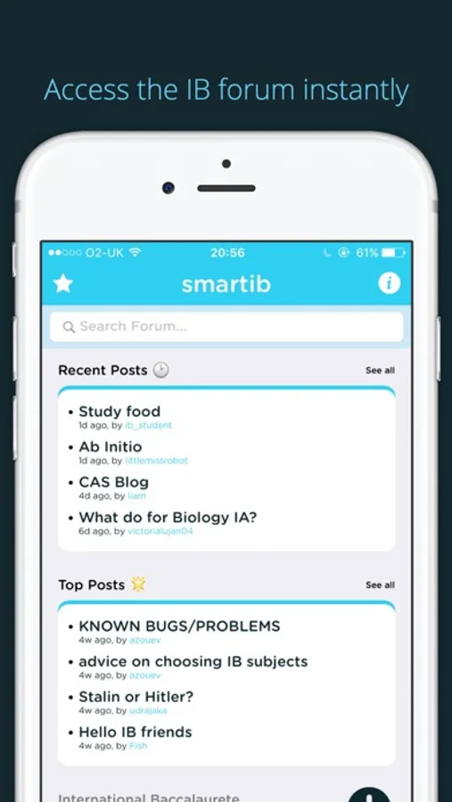 smartib is a social media platform and community forum app designed specifically for students undergoing the International Baccalaureate [IB] Diploma program. The app allows students to create a profile and connect with other IB students all over the world via a well-organised forum where they can ask and answer questions. This app is made possible by Alexander Zouev.