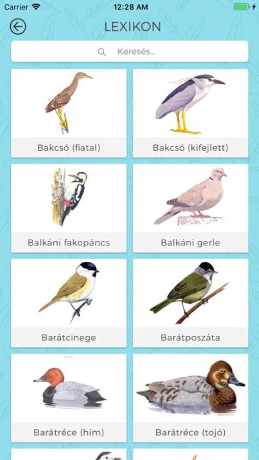 • Madárlexikon: Ha nem határozni szeretnél, csak ismerkedni a madarakkal, akkor a madárlexikonban megtalálod az alkalmazásban szereplő összes madárfaj leírását, illusztrációját és hangját.