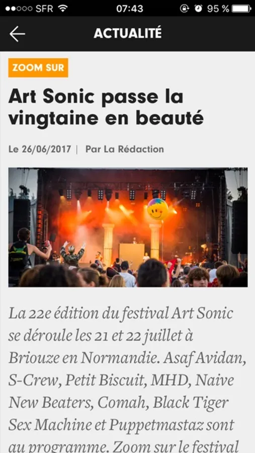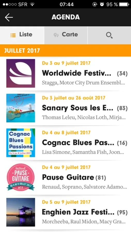 Avec plus de 1500 festivals répertoriés l'application propose un agenda exhaustif, simple et pratique, qui permet au festivalier de trouver facilement l'événement qu'il recherche.