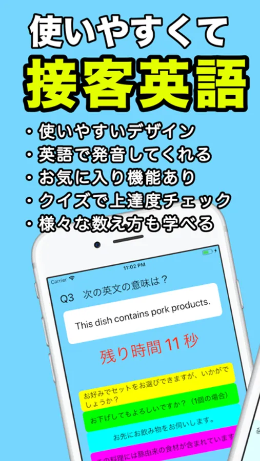 - 英語が話せなくても、英語フレーズを表示するだけでコミュニケーションがスムーズに。