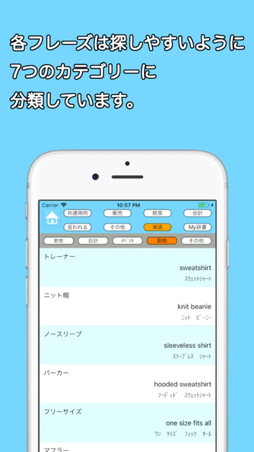 - 7つのカテゴリーに分類されたフレーズで探しやすい。