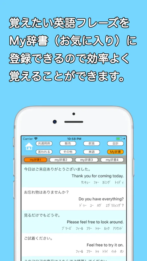 - お気に入りのフレーズは「My辞書」に登録して効率的に学習。