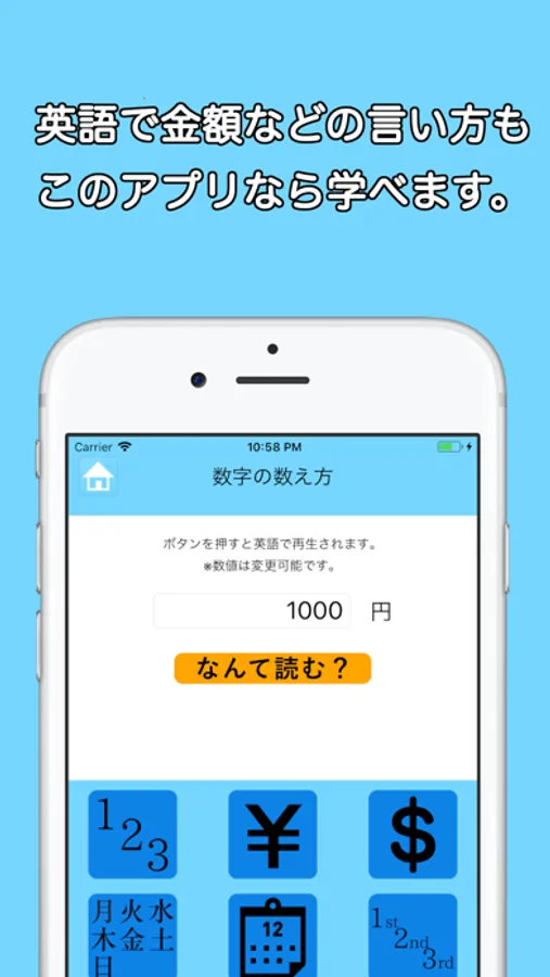- 数字や金額の英語表現も学べる。