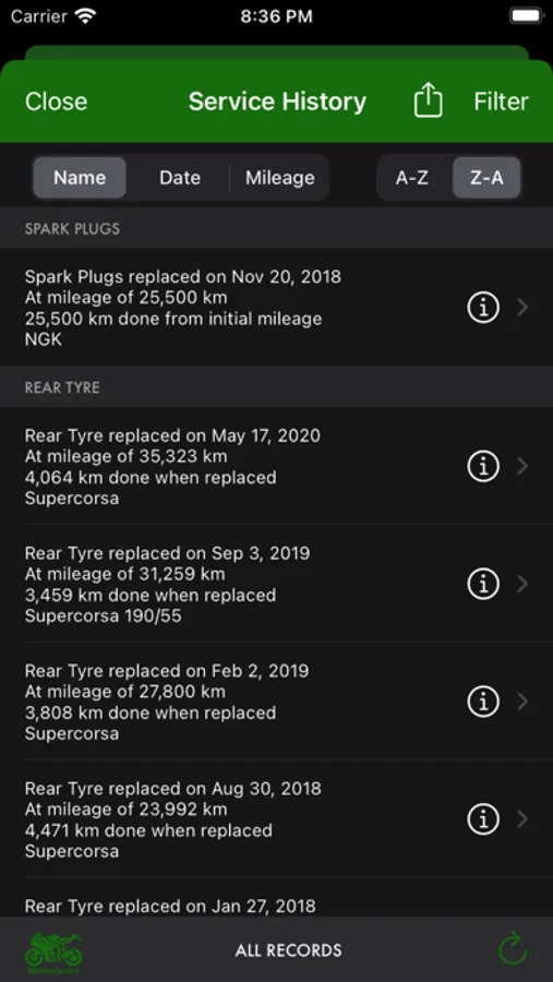 Servetrac MC was developed specifically for motorcycles, it is used to document service and maintenance history of motorcycles. Keep track of when the last oil change was, how many miles you have covered on your current set of tyres or the last time you checked the brake pads to name but a few. Future services dates are predicted based on service history of a specific part, service reminders can then be created and saved to your iOS Calendar.