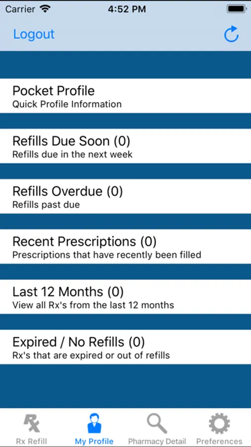 • Access a pocket profile--a summary of your recent prescriptions, prescribing physicians, allergy history and more