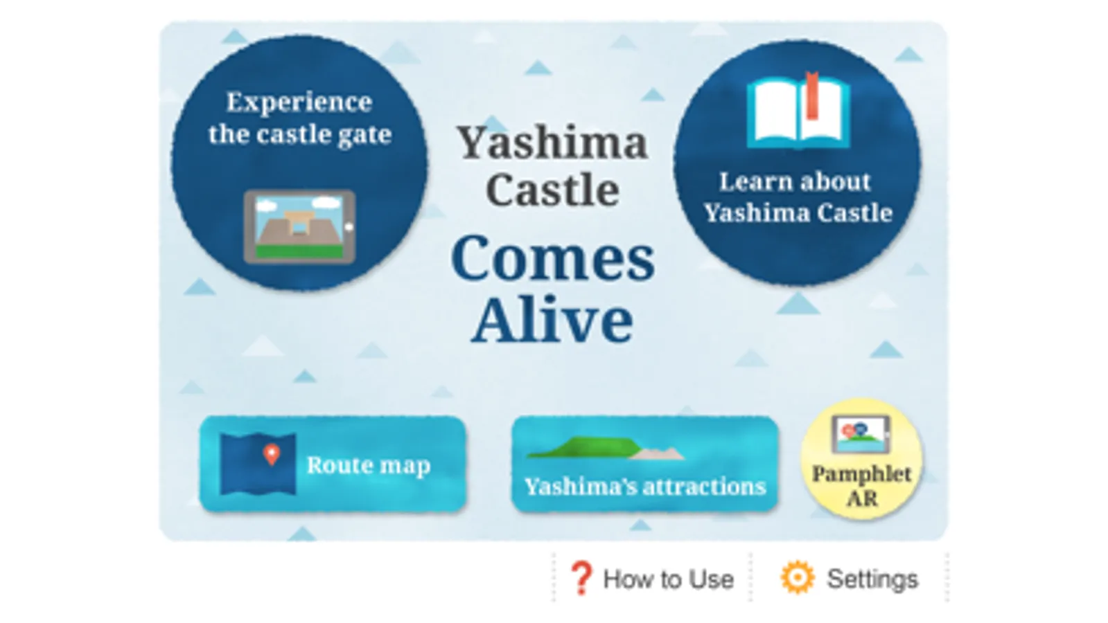 Yashima Castle Comes Alive lets you experience Yashima Castle restored with AR (augmented reality) and VR (virtual reality). Yashima Castle is an ancient castle built around 1,350 years ago that is recorded in Nihon Shoki (The Chronicles of Japan), the oldest history book in Japan. The app introduces Yashima Castle and Yashima while touching on Yashima Castle's history and attractions in and around Yashima.