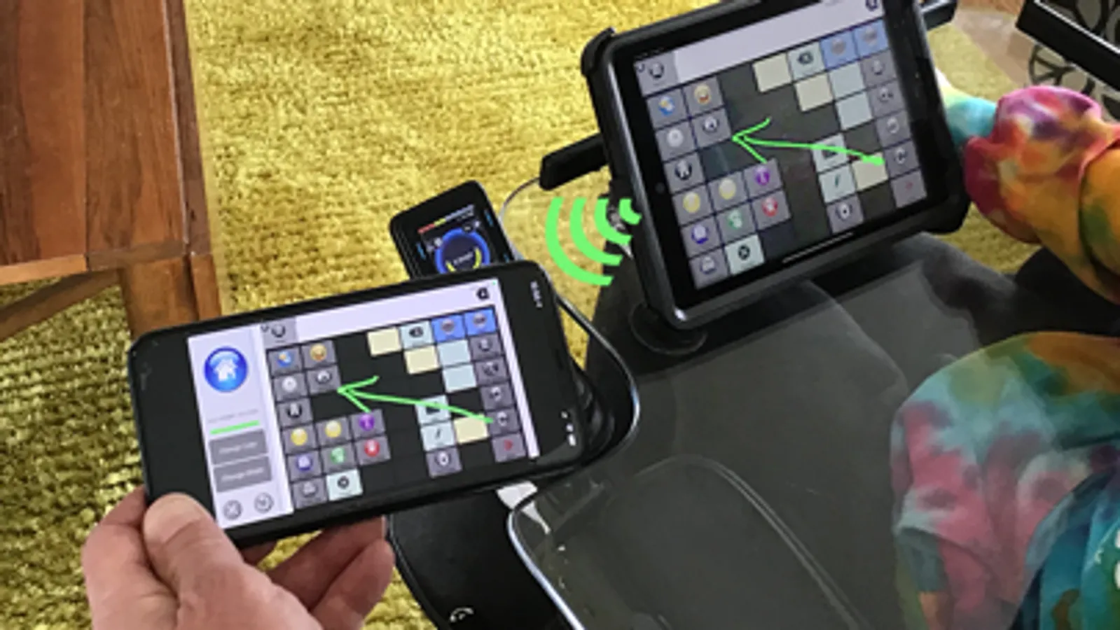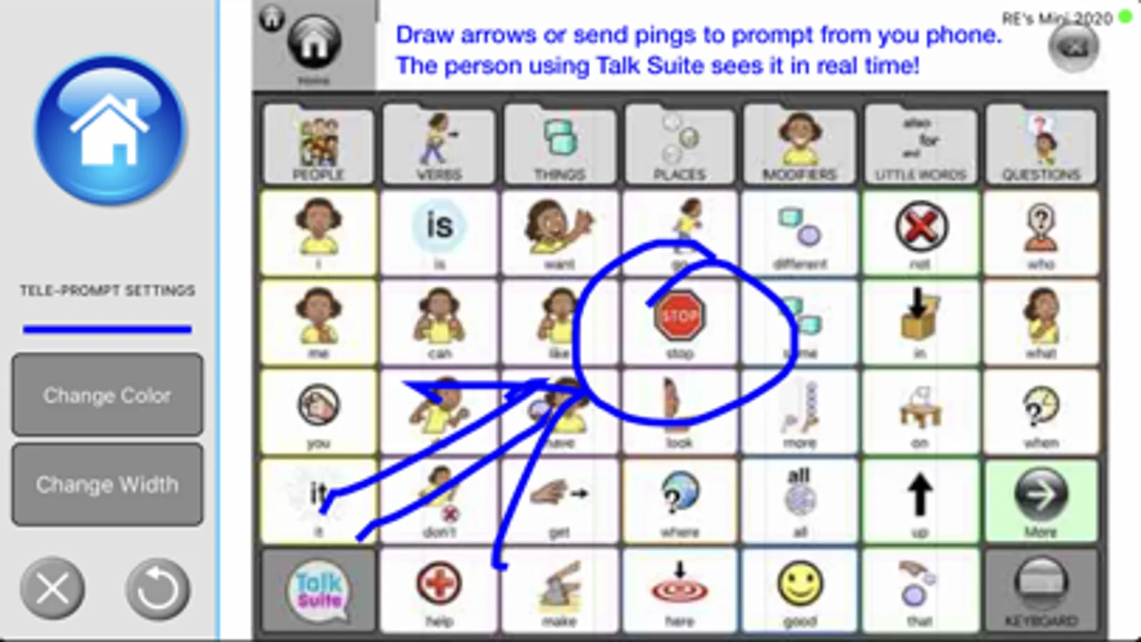 Let's you see how someone is using Talk Suite by showing you their iPad screen mirrored on any iPhone (or iPad) that easily connects with Bluetooth. Teachers and teachers and parents can view as buttons get touched and pages change. Then, draw or suggest ideas on your iPhone and those prompts magically appear on the other iPad screen... just like the "telestrator" you see when you watch football games. What an amazing support! And so empowering or all.