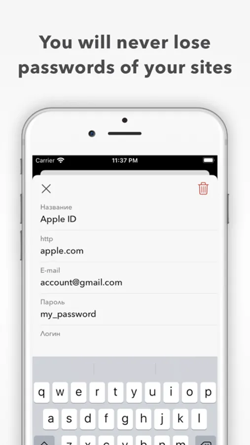 Cloud Passwords - handy tool for passwords storage. Make a note, fill the fields and done! Cloud Passwords will remember and synchronize notes via iCloud.