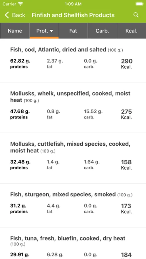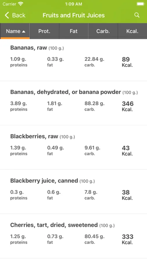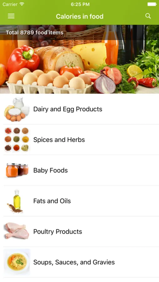 Using the calories table you can define the energy value of the most popular food items and cooked foods. As well, you can learn and correct your daily eating. General list includes the information on energy, carbohydrates, proteins and fats content in 100 grams of food. Energy value is expressed in kilocalories (kcal). The app contains more than 8700 items, and for your convenience it is separated into sections, and food items are listed in alphabetic order. Data in table are maximally exact, but you shall remeber that cooking peculiarities of some food influence the energy value and content of proteins, fats and carbohydrates.