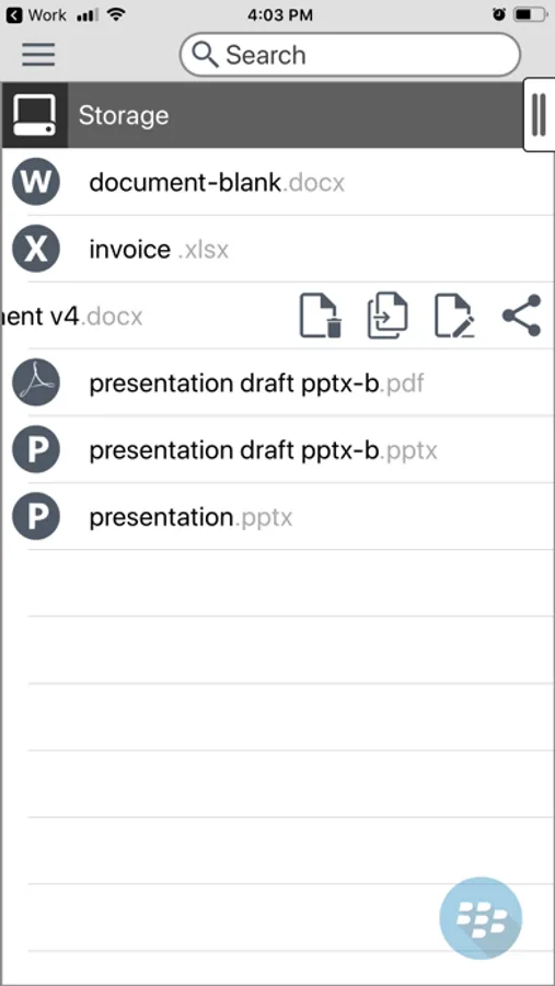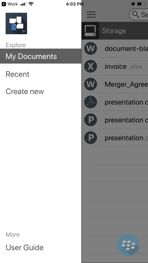 • Open in and edit Interoperability with other BlackBerry Dynamics enabled applications such as BlackBerry Work and BlackBerry Docs.