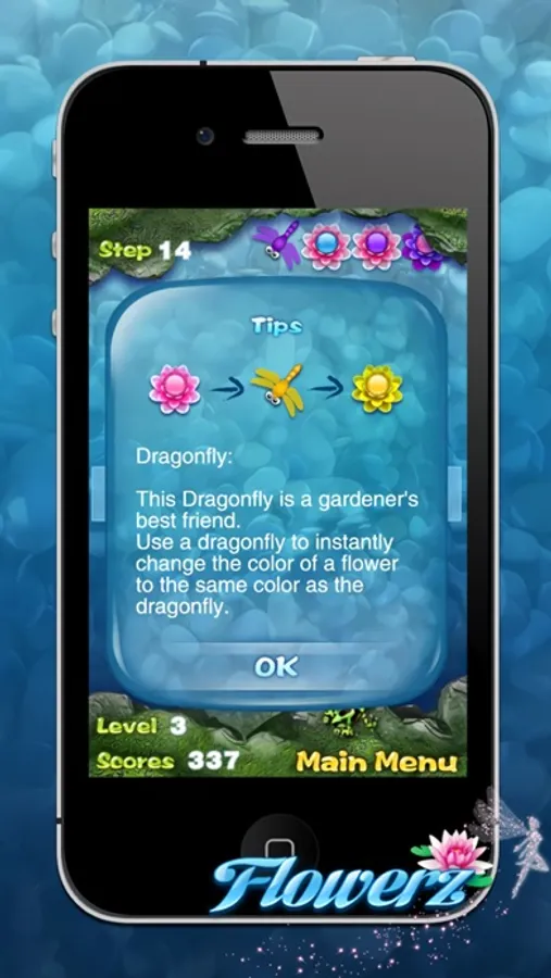 ● Use a dragonfly to change a waterlily’s color to the same as the dragonfly.