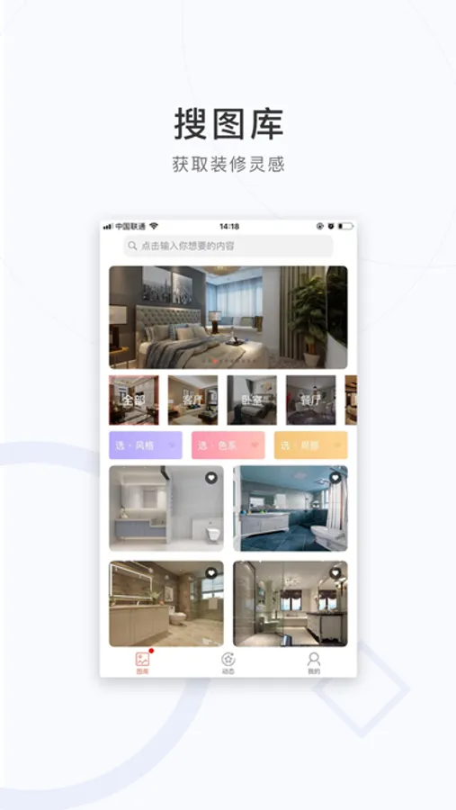 《装修图库》作为新式家居图库应用平台,帮助更多用户体验不同的家居生活方式。总说,家是装不满、装不够的;随着时间流逝,家的装修设计也在不停地更新变化着,不论你的喜好怎么变,在装修图库的世界里,大大小小的空间、千姿百态的风格与色彩斑斓的格调都能满足你对灵感美图和渴求和阅读选择的体验。让自己成为自家的设计能手,让家日日都在变,天天都不同。
