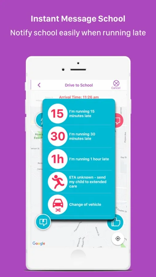 -School is instantly informed of your arrival time, ensuring your child is ready for pick up