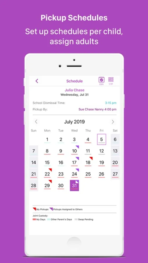-Set up profiles for each child and adult involved in pick ups
