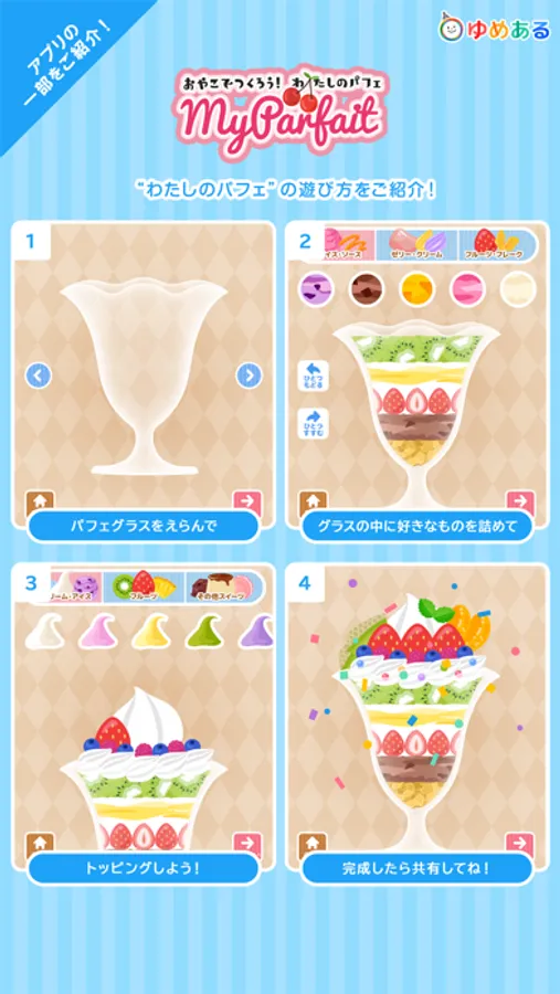 デコレーションしたスイーツは「みんなのひろば」に投稿できるよ!