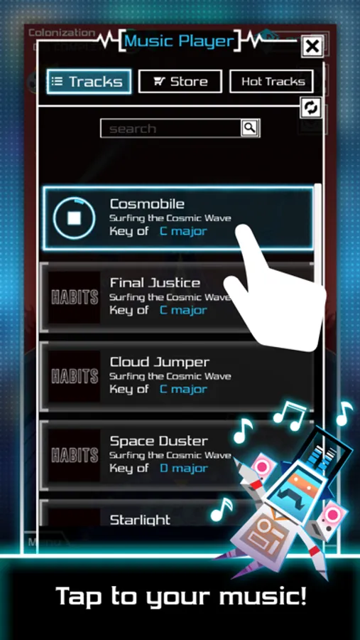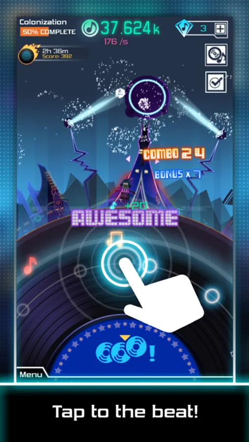 EXPLORE the Galaxy and extend your Groove across distant solar systems. COLONIZE planets by tapping along to the RHYTHM of your songs. Earn music NOTES to build state-of-the-art microphones, recording studios and metronomes, in order to increase your groove production. Unlock the mysteries of the elusive TEMPLE OF GROOVE.