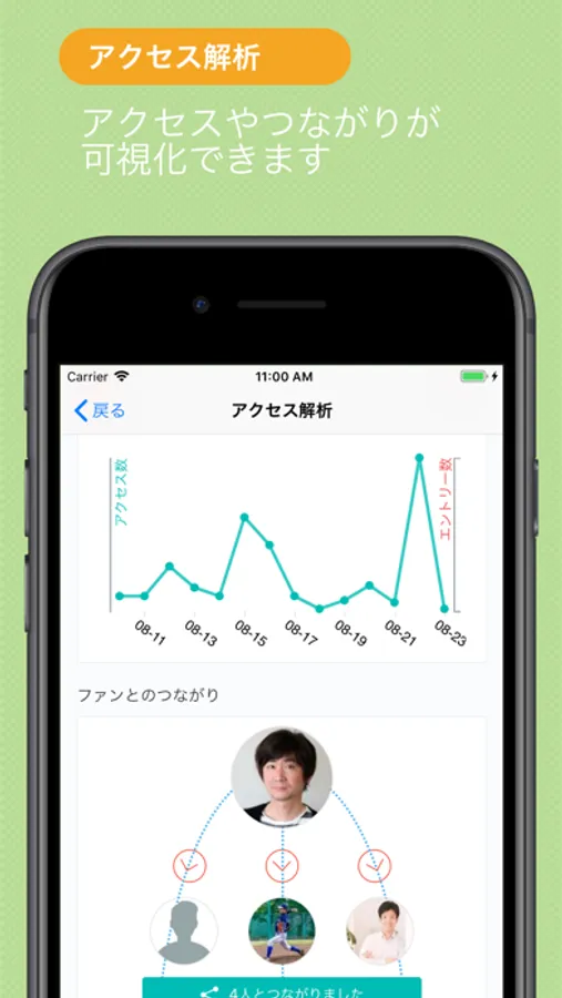 スマートフォンでいつでもページのアクセス数やつながりの解析を行うことができます。