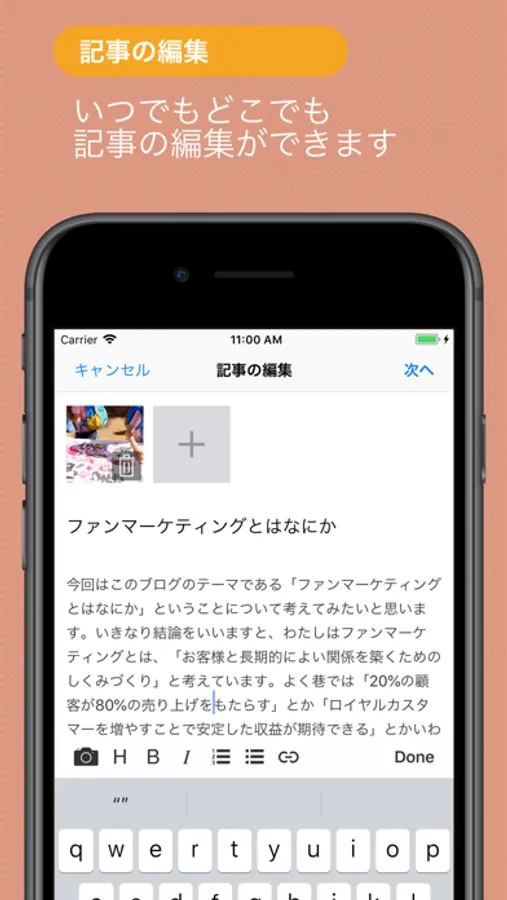 記事の投稿と編集を行うことができます。下書き保存してあとで投稿することもできます。