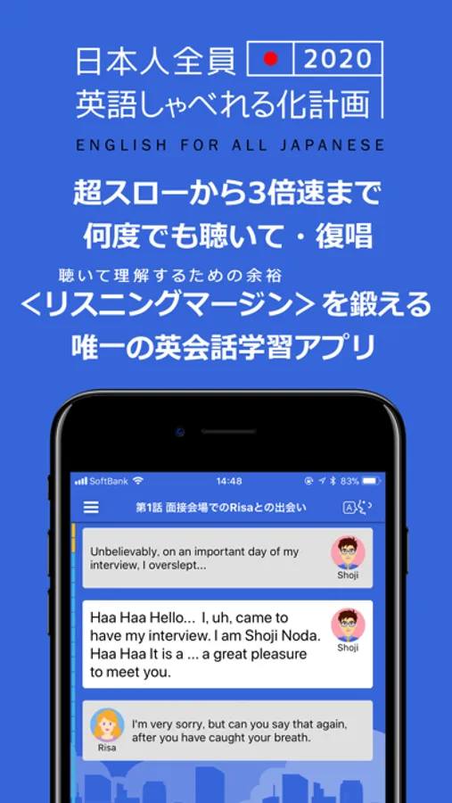 忙しい現代人が手軽に・いつでも・高品位な英語学習機会を持てるように。それが「日本人全員英語しゃべれる化計画」の願いであり、このアプリはその1つの形です。