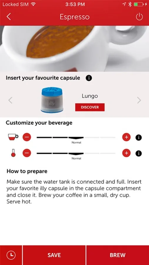My illy machine is an app that connects your smartphone to the Iperespresso Y5 Espresso&Coffe machine via Bluetooth. The app lets you operate the machine remotely, so you can select your favourite settings, prepare a coffee and even control the descaling machine process from another room. The app also makes sure you never run out of capsules with its automatic re-order system.