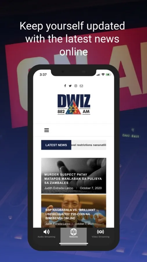 The DWIZ 882 AM mobile app is a FREE audio/video live streaming app of the Aliw Broadcasting Corporation’s AM Radio Station in the Philippines.