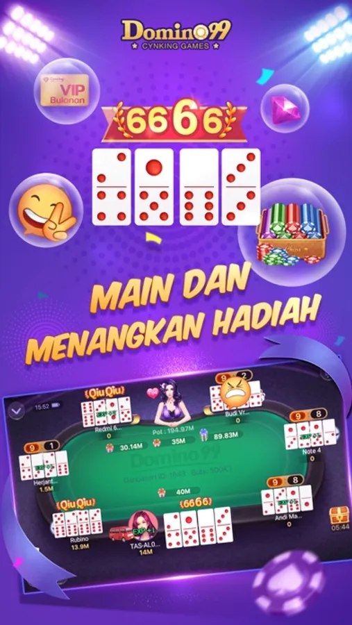 Domino QiuQiu adalahpermainan kartu lokal yang sangat populer di Indonesia, cara main sangat sederhanadan praktis untuk memenuhi kebutuhan yang berbeda dari pemain yang punya waktuluang, pingin berteman, suka bertanding. Ayo main dan nikmati pengalamanbermain yang menabjubkan!
