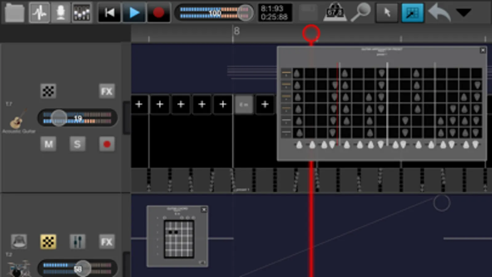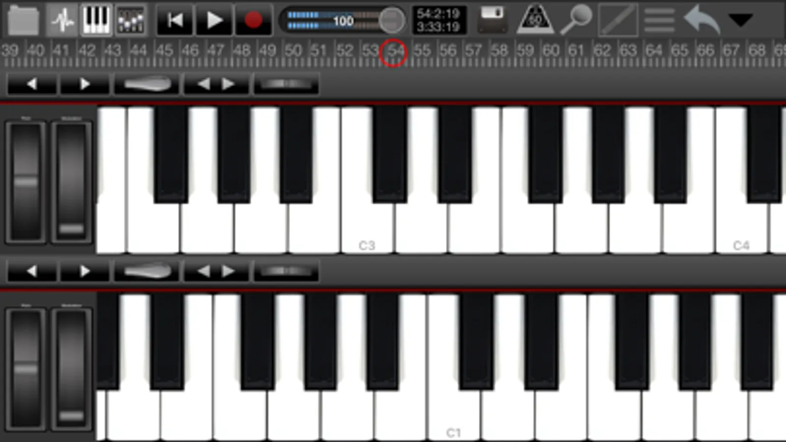The audio tracks can be recorded using the built-in microphone or by connecting an external microphone. The virtual instrument tracks can be recorded using the multitouch keyboards optimized for high performance and responsive touch or using a MIDI keyboard. After recording your tracks, you may want to edit them in the integrated sample editor (copy/paste, split, loop, fader, reverb...).