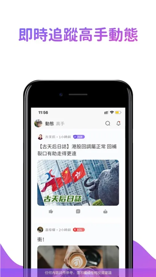即時推送功能,追蹤財經高手第一手可靠消息,讓您更快捕捉入市時機,把握投資先機,投資交易更有信心!