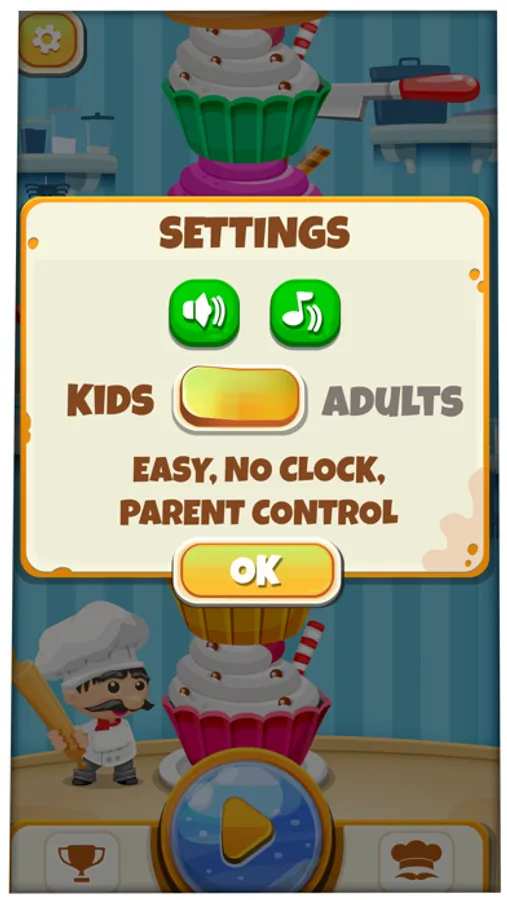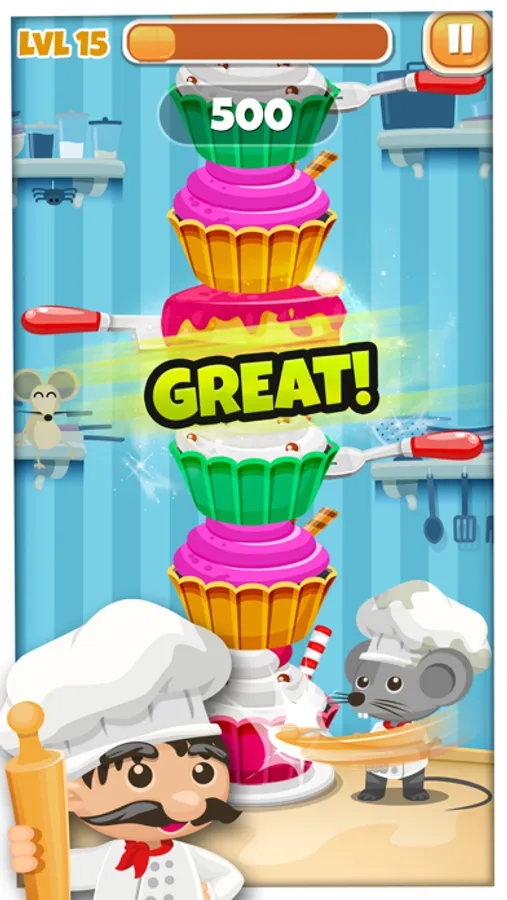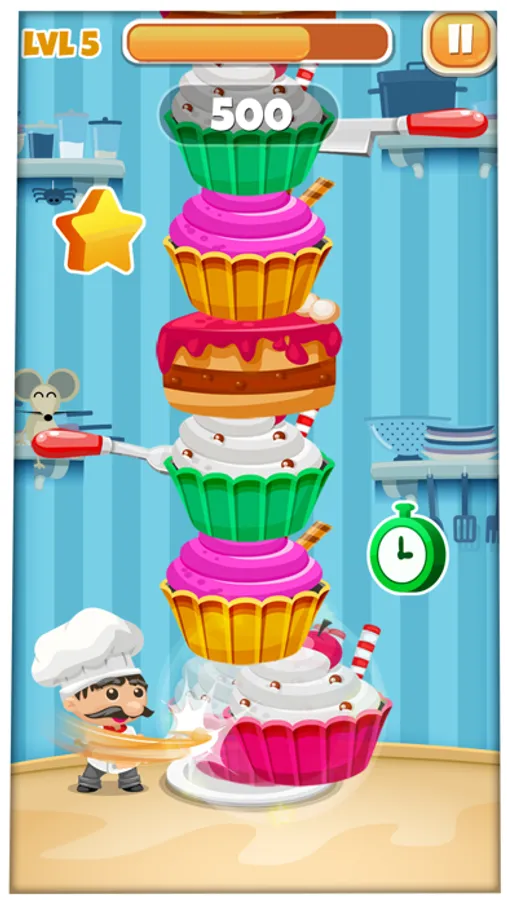 Enough of reading your cookbook recipe! Time to take out your kitchen timber & begin the chopping challenge!Cut the tower cake as fast as you can with your wood rolling pin to become a super chef ninja! Your customers are waiting for a piece of one of your famous desserts, so you better start cutting! Try the new trendy old school style casual arcade game that can be easy to play but seriously hard to master. Chop the delicious cheesecake, ice cream cakes, cupcakes, birthday and even wedding cakes!The tower of sweeties is endless, and they are so tasteful looking that it´s impossible to resist chopping them! Prepare your wooden rolling pin and begin smashing, but be careful! This is not only about making a mess in your personal candy wars! Like all chefs, your kitchen is your town, and it´s filled with the best chef knife collection, axes & more dangerous tools. You´ll have to focus while slicing because some good knife throw action is taking place; if you don´t avoid the knives falling the only cooking chopped thing is going to be you!