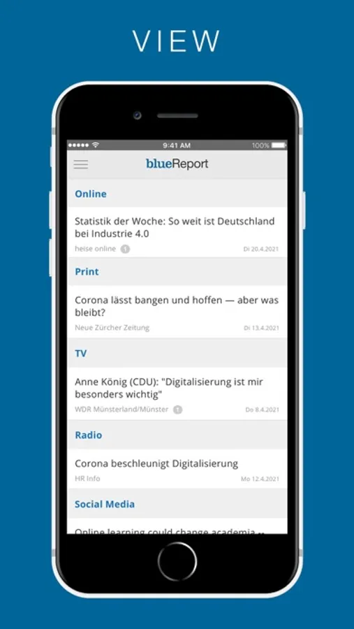 Der Medienwandel hat die Verbreitung von Nachrichten revolutioniert: News sind heute dynamisch und erscheinen 24 Stunden am Tag – und zwar auf allen Medienkanälen. Deshalb sind statische PDF-Pressespiegel und tägliche eMail-Zusammenfassungen mit Links auf die Artikel vom Vortag schon beim Öffnen wieder veraltet. Genau hier setzt blueReport an und ersetzt den traditionellen PDF-Pressespiegel mit einem fortschrittlichen, einfachen und griffigen Arbeitsinstrument für die interne Informationsverteilung, mit welchem sich die aktuellsten News aus Print, Online, Social Media, Radio und TV in Echtzeit abbilden lassen.