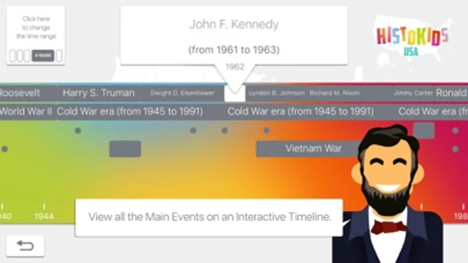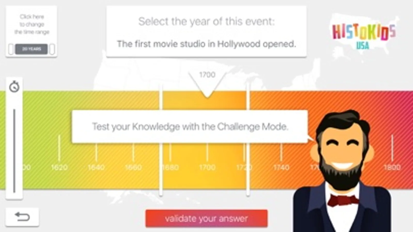 In the adventure mode you will learn U.S. History with Abraham Lincoln. You'll find events to put in order, take a quiz and organise time periods.