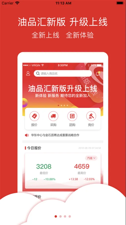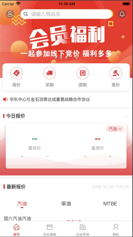 汇集海量油品,新增实时报价,一目了然;采购专区,应有尽有;线下竞价,福利多多;