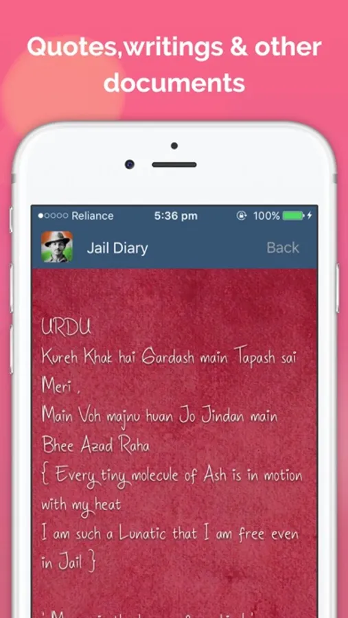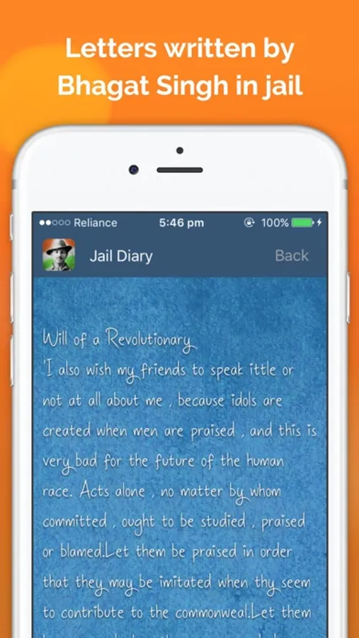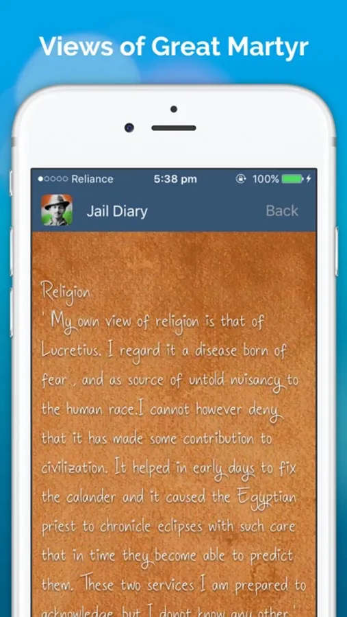 This note book was received on 12 Sep 1929 when the agreement was made between the hunger strikers and Special Jail committee. It was written by great Indian Martyr Bhagat Singh while being in jail. This app contains the various writings,quotes and letters from notebook written by Bhagat Singh written while imprisoned.