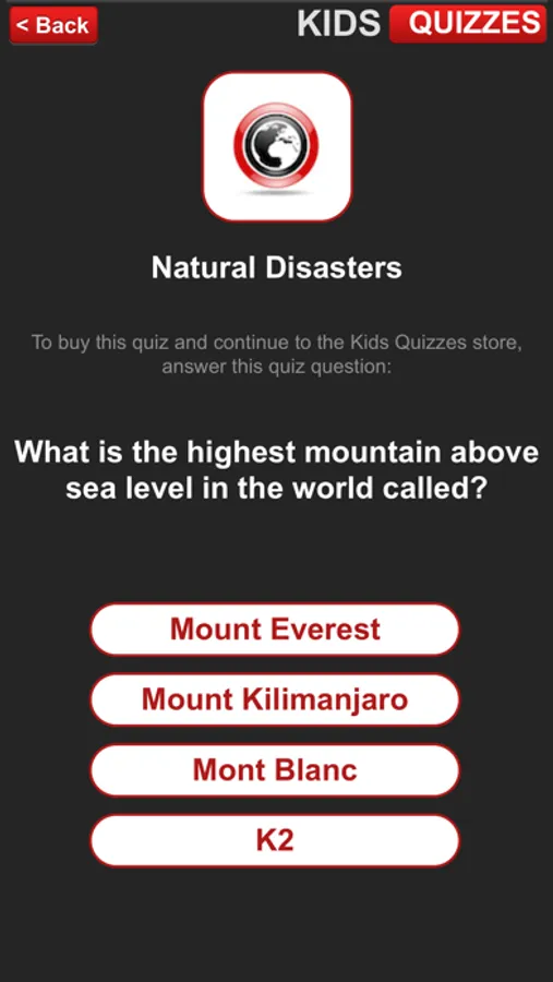 KidsQuizzes is a quiz app for children of school age. Each quiz category is designed to reflect subjects and topics taught at school. The quizzes available are curriculum-based. The app includes 20 quizzes at start-up and a general knowledge section. Further quizzes can be purchased.