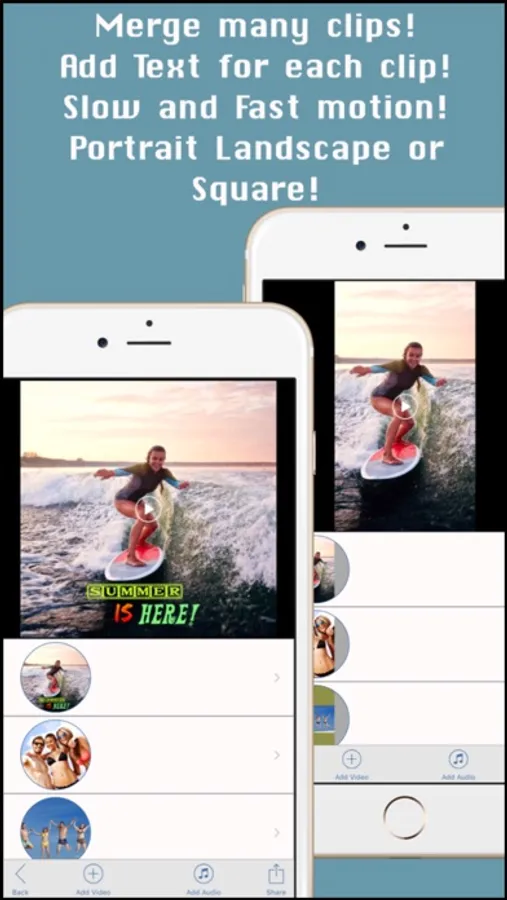 [+] Combine all your short clips to make a movie. Re-arrange or remove clips as needed.