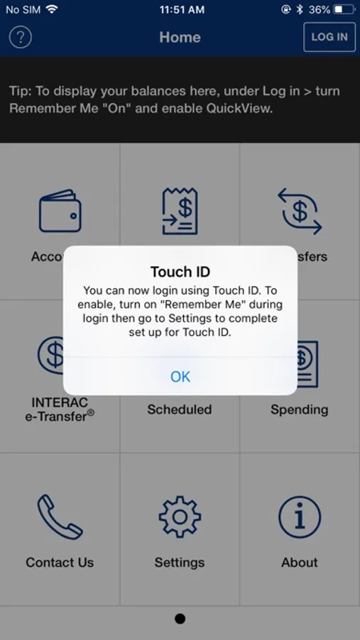 A secure and easy way to access your account, send an e-Transfer, or pay a bill in seconds.