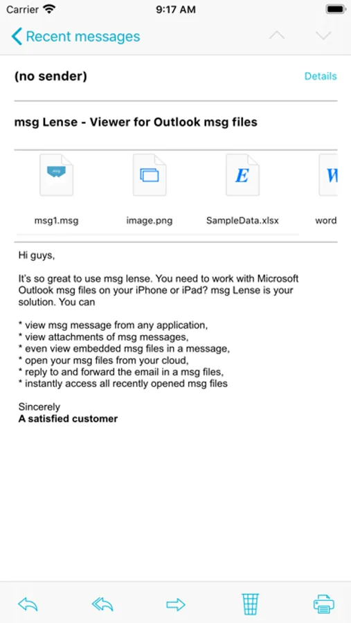 Easily view and work with Microsoft Outlook msg files on your iPhone or iPad. With msg Lense you can