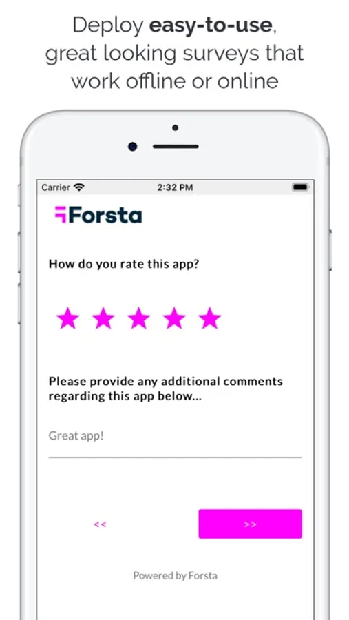 AskMe streamlines the process of completing surveys so you can provide responses whenever and wherever it suits you. Regardless of whether you have good, patchy or no internet connection at all, your survey responses won’t be lost – even if it contains multimedia information like photos or videos. AskMe makes answering surveys quicker and easier than ever, and is supported by the power of Forsta, the world’s leading technology for multi-channel feedback and research.