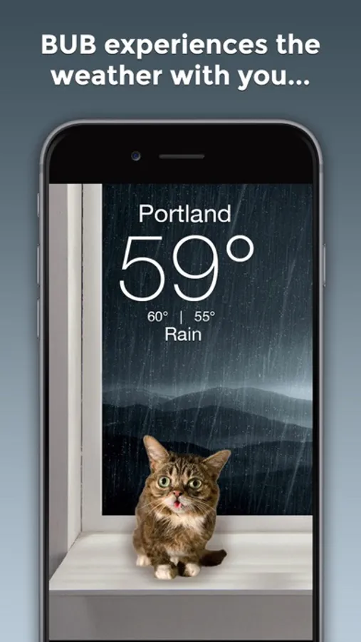 Congratulations, you've found the Official Lil BUB Weather App! Smile every time you check the weather as BUB brings you the forecast in her own, magical way.