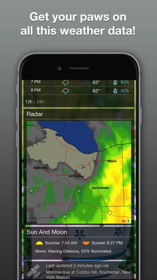 - Today's high and low, feels like, humidity, wind, sunrise/set and more