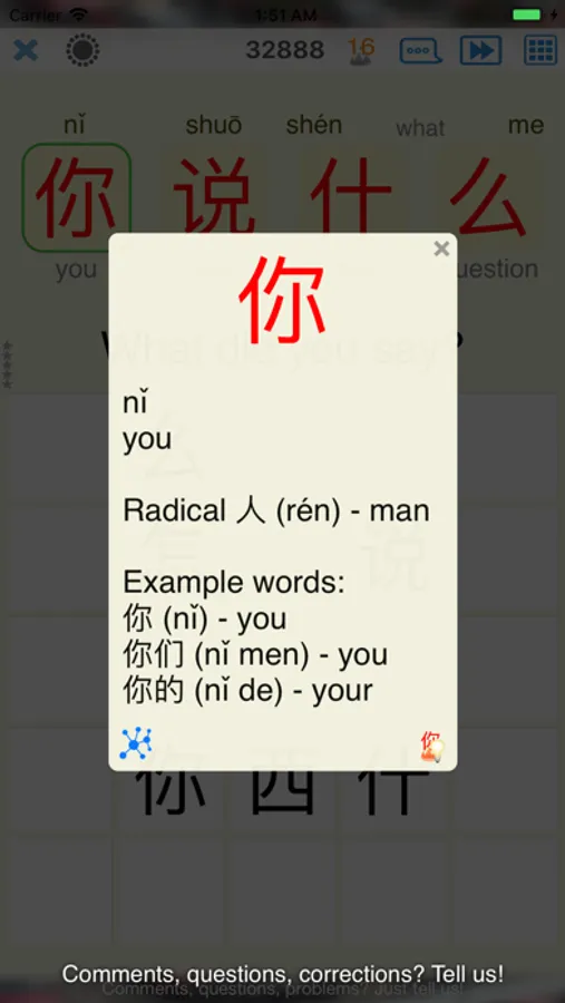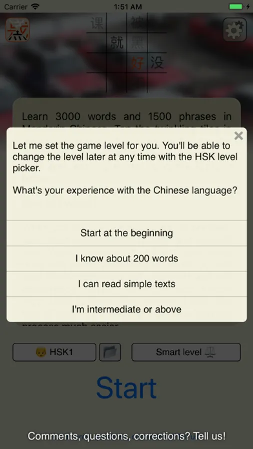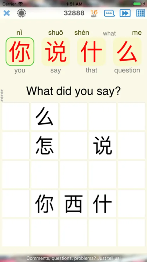 Learn 3000 words and 1500 phrases in Mandarin Chinese playing this game. Tap the twinkling tiles in the correct order to form the word or phrase.