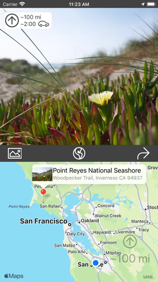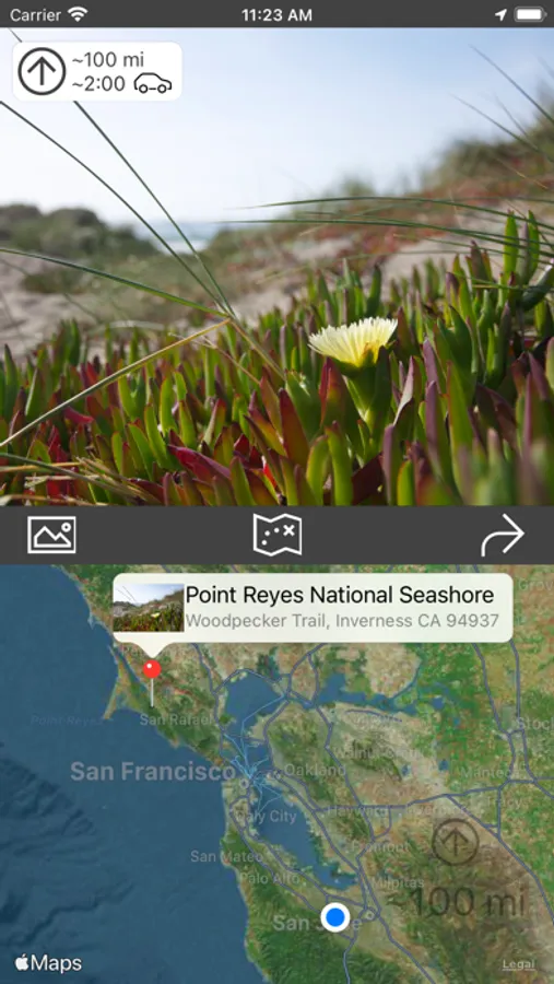 PhotoNav simply shows you a photo from your photo library with its location shown on a map, and lets you get directions to the place it was taken.
