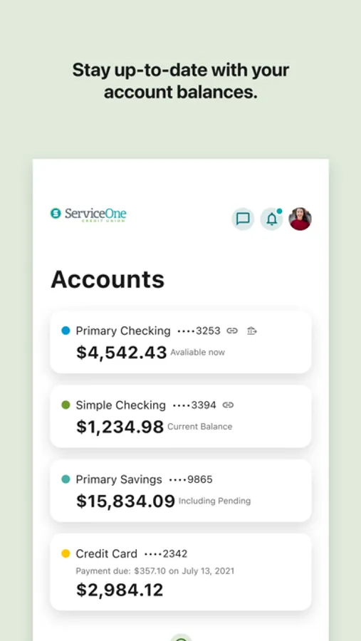Banking with Service One has never been easier with our mobile app! Enjoy the great look and feel to easily complete your everyday transactions and view your account information. Make payments, transfer funds, view statements, and deposit checks with a few taps. Apply for loans, new accounts, become a member, or find your closest ATM or branch location.